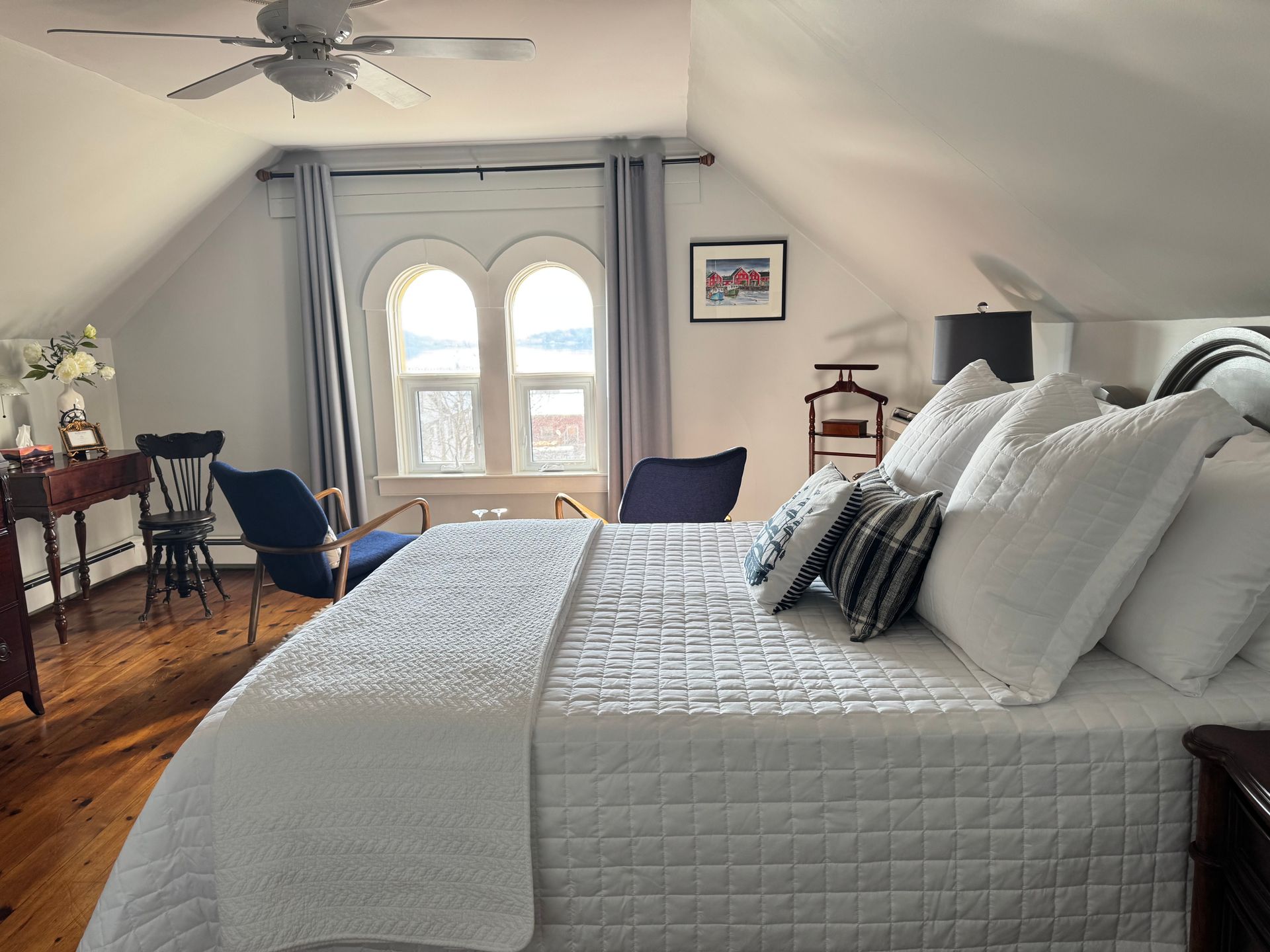 Situated on the third floor, the Bluenose Room boasts stunning views of Lunenburg’s historic Old Harbour. Guests can soak in the beauty of breathtaking sunrises that fill the space through two lovely arched windows. Experience tranquil nights in our premium queen bed, outfitted with COMPHY LINENS that are as light as air and as soft as a cloud.