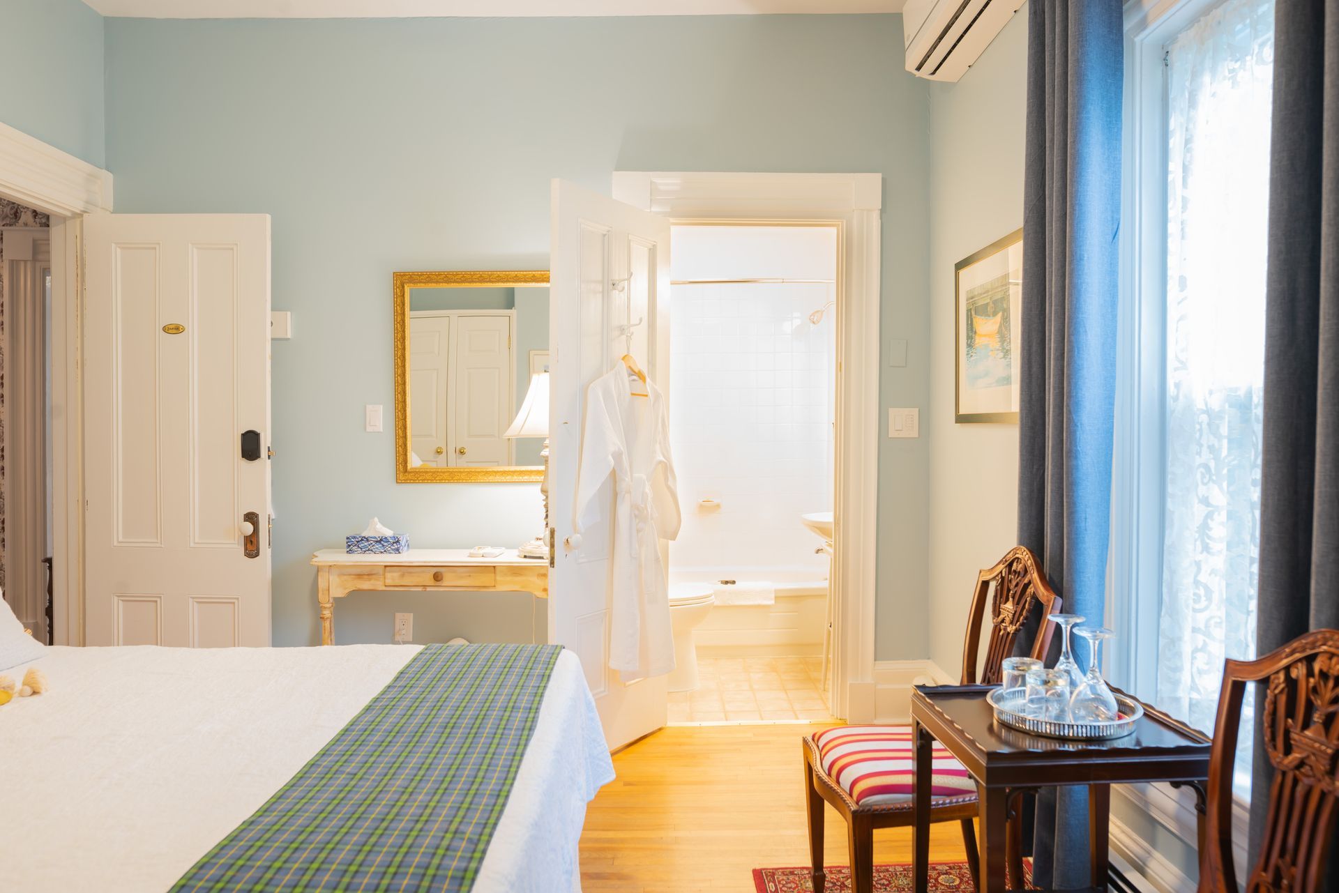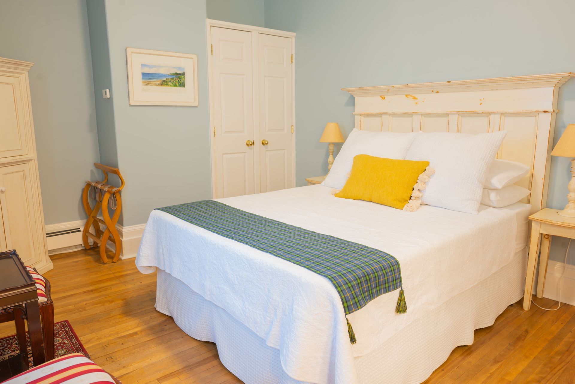 The Tartan Room, located on the second floor, beautifully embodies the enchanting charm of a traditional Nova Scotia seaside cottage. This cozy retreat features an elegant queen bed, fostering a tranquil atmosphere ideal for relaxation and rejuvenation. Fitted with luxurious COMPHY LINENS, the queen bed promises a truly restful night's sleep.